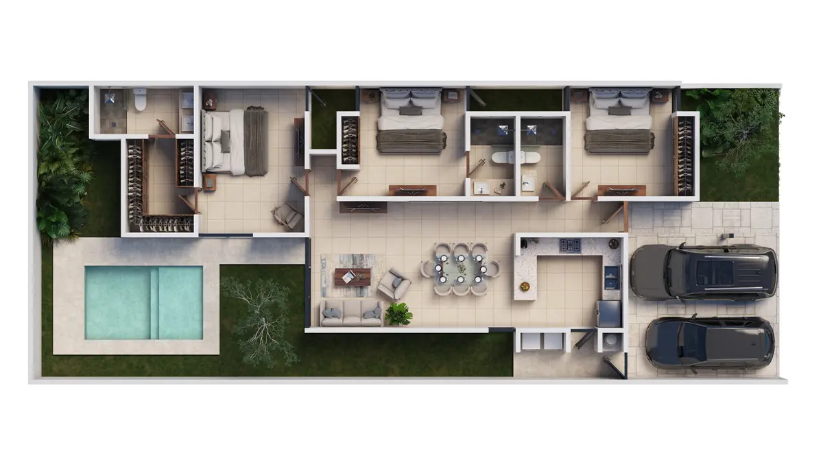 Construcción desde 208 m² • 3 Recámaras • 4 Baños
